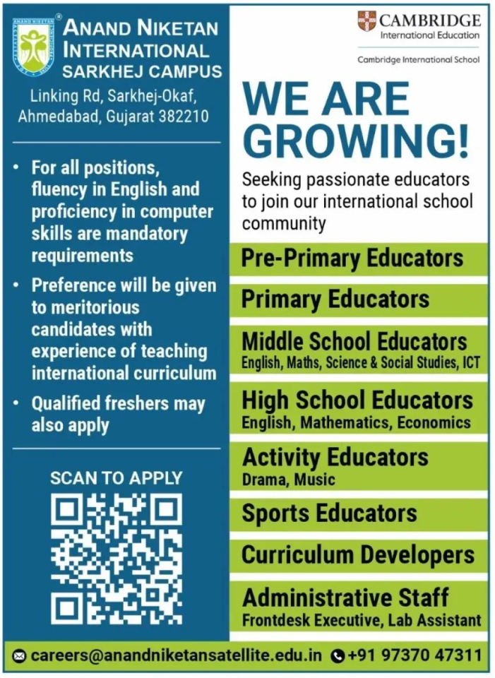 Anand Niketan International – Sarkhej, blends global education with deep-rooted Indian values. Founded under Utthan Seva Trust, we foster joyful, hands-on learning that develops curiosity, character, and confidence.
